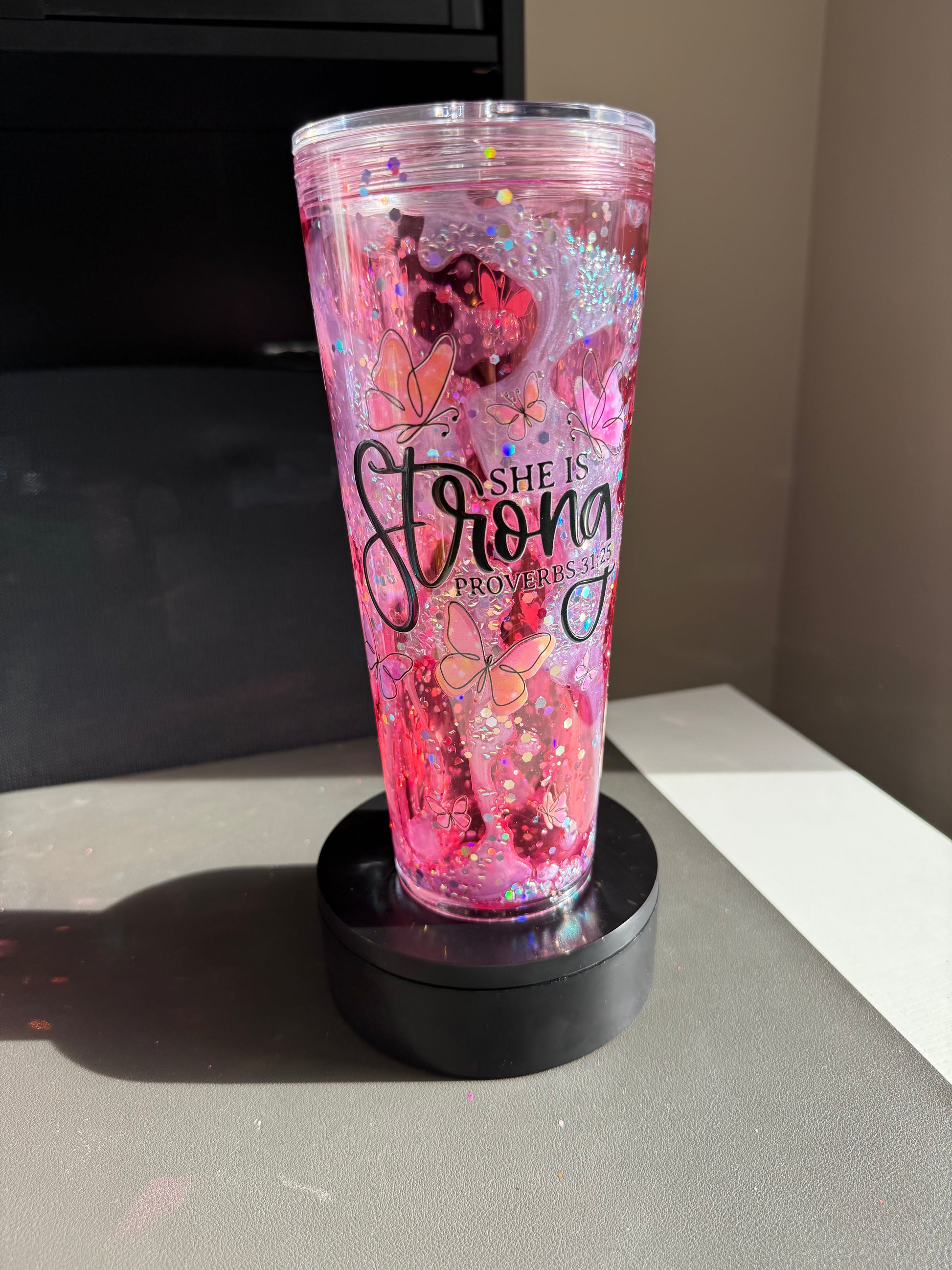 * Please note: Each snowglobe tumbler is handmade and one of a kind. Minor variations in color, flow, and glitter placement are normal. Custom orders are final sale.